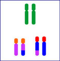 しかし,配偶子(卵や精子)を形成する減数分裂の結果によって,以下のような構造異常を持つ染色体構成となります.